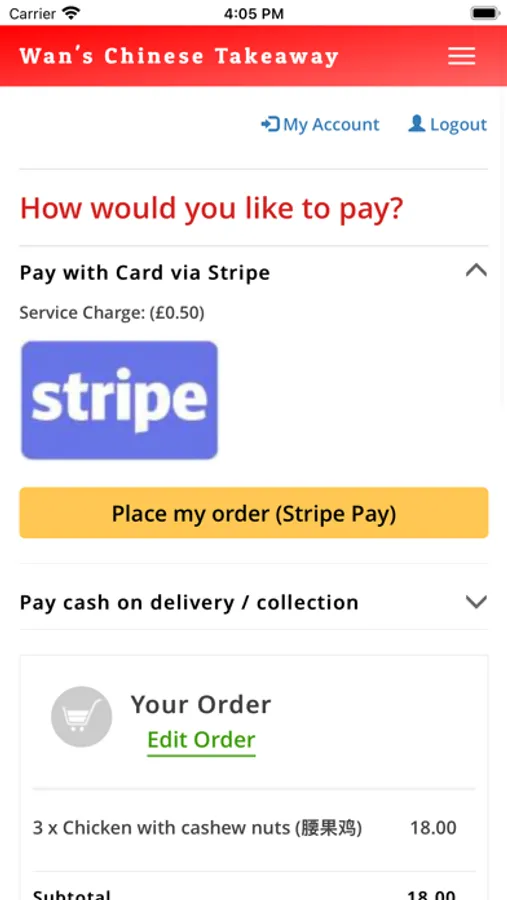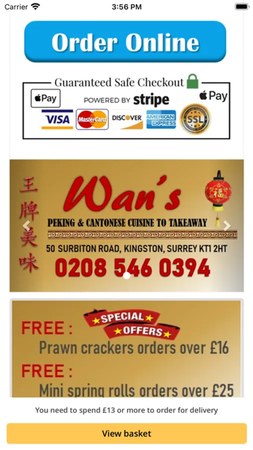 - Food orders can be paid online using card, Paypal or cash upon collection or deliveries