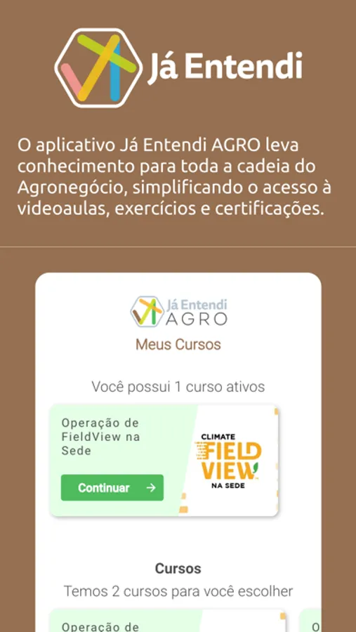 O aplicativo Já Entendi AGRO leva conhecimento para toda a cadeia do Agronegócio, simplificando o acesso à videoaulas, exercícios e certificações. Permite acesso a qualquer hora e qualquer local, on-line e off-line. Por um Agro + produtivo e sustentável.