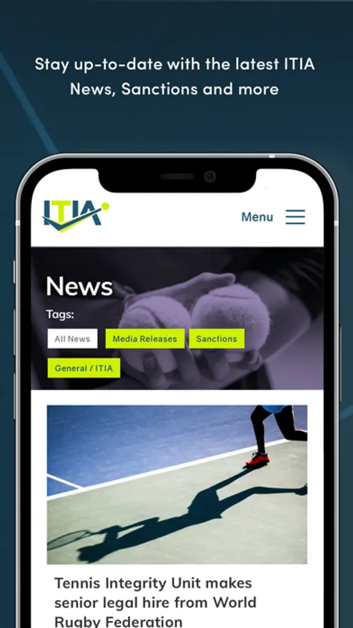 The International Tennis Integrity Agency (ITIA) app is an interactive mobile resource designed to provide you with up-to-date guidance and information on the Tennis Anti-Corruption Program (TACP).