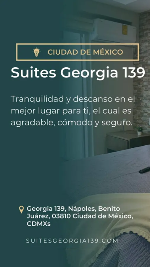 Ahora, atreves de nuestra App podrás realizar tus reservaciones, obtener cupones de descuento, tener promociones exclusivas para ti, descubrir todas las suites de Georgia 139 y mucho mas.