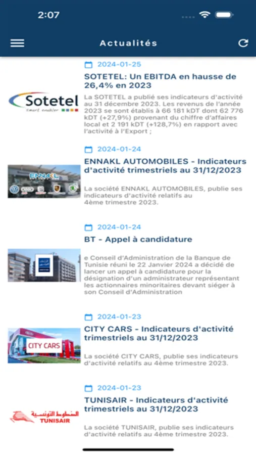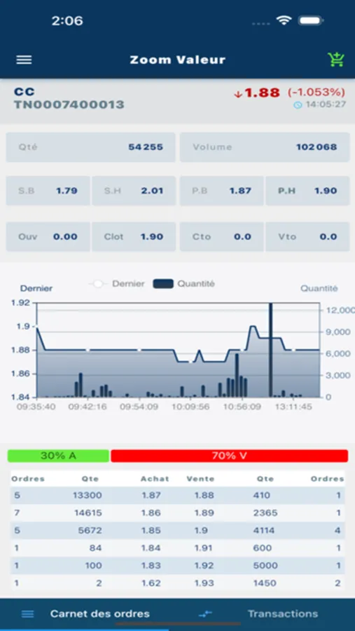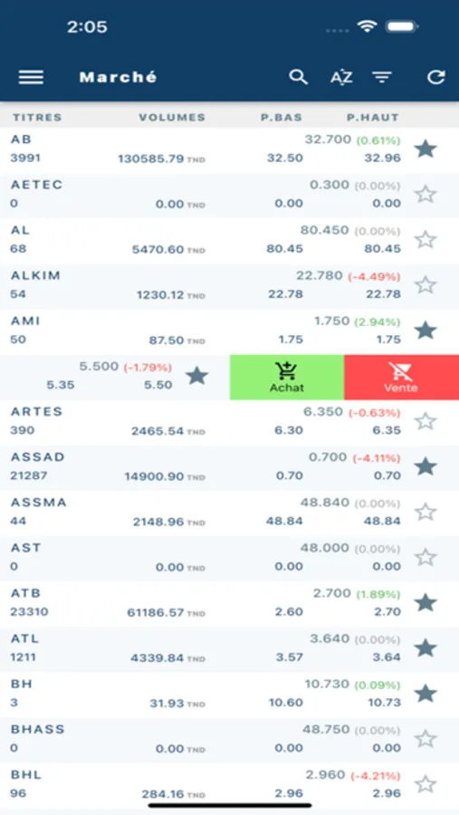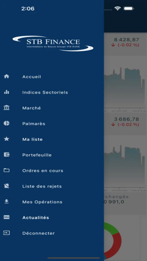 - La visualisation des indices et des cotations du marché de la bourse de Tunis.