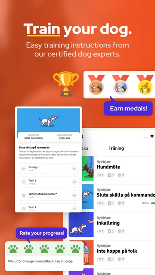After each finished lesson your dog will receive a medal that can be proudly displayed on their profile for visibility and bragging rights