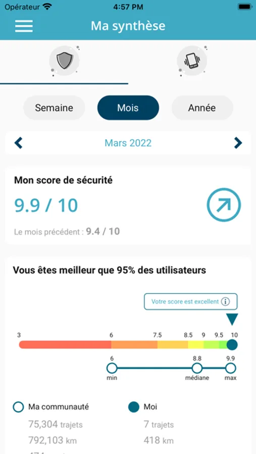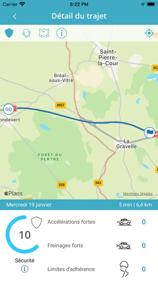 L’application fonctionne en arrière-plan et détecte automatiquement le début et la fin de vos trajets.