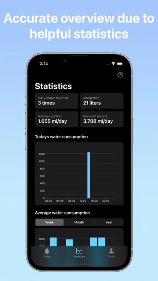 Get your body back on track by drinking more water consistently and making it easier than ever to get into the habit. WaterLog helps you do this by calculating a daily goal based on common metrics and motivating you to drink at an interval of your choice. Your water consumption is presented in detailed graphs so your inner number cruncher can see what you've achieved in no time.