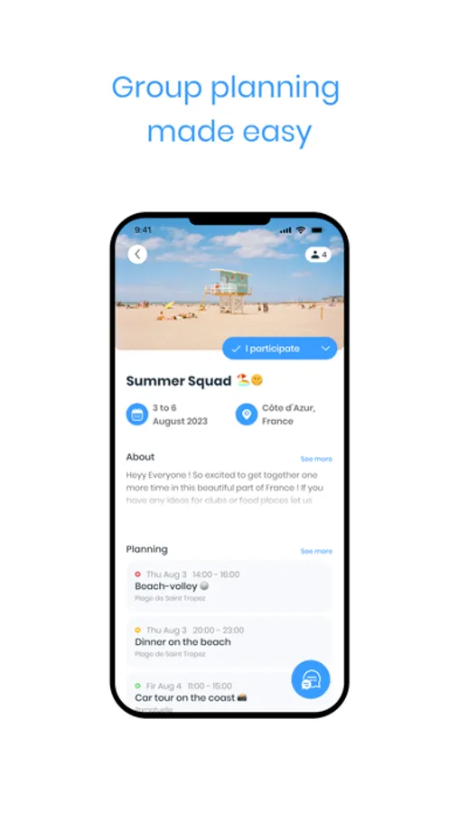 Speciall is for everyone, for each group sharing moments together. Whether you're a group of friends planning a vacation, a family organizing a reunion, a couple sharing memories, a club or association coordinating events, or students planning their study together, Speciall is your platform.