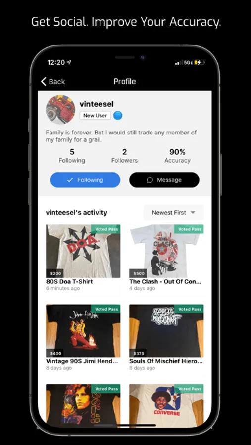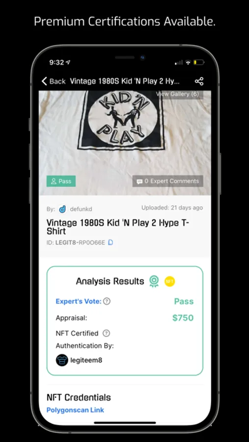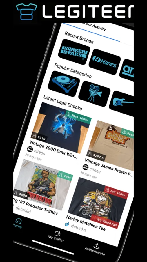 Legiteem8 is the world’s first vintage t-shirt authentication app. But we’re also the first authentication app to harness the power of community. If you’ve got a t-shirt you’d like to authenticate, simply upload the required photos and input the essential data and let the social element of Legiteem8 work its magic.