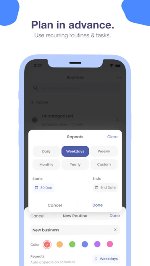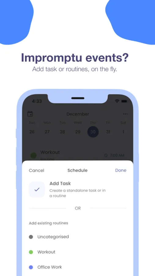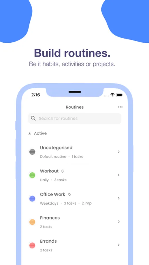 • Tasks - All your tasks from across routines under one roof. Add, remove or plan your tasks from here.