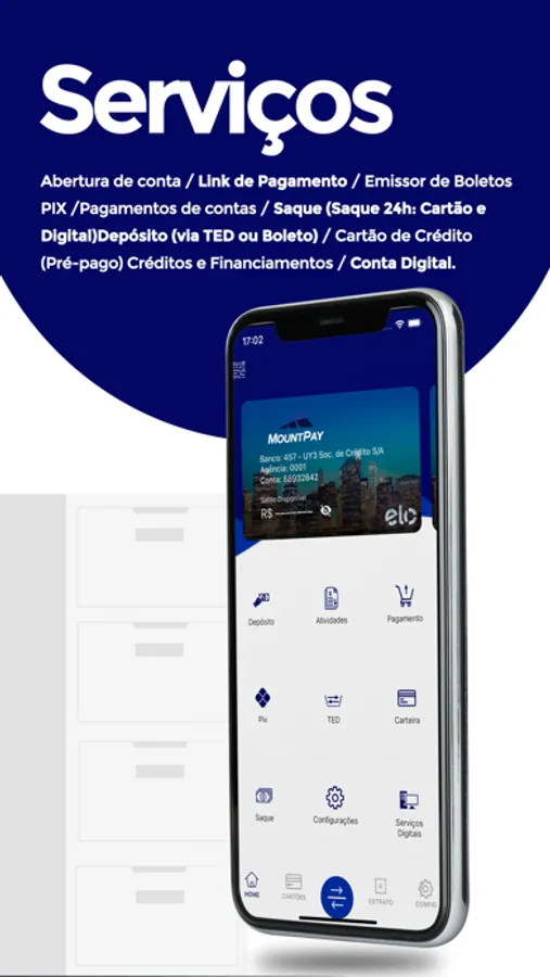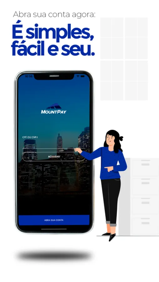 "Abra sua conta digital no Mount Pay. Evoluímos cada vez mais para que você tenha a melhor experiência, O Mount Pay oferece uma conta corrente completa e totalmente gratuita!