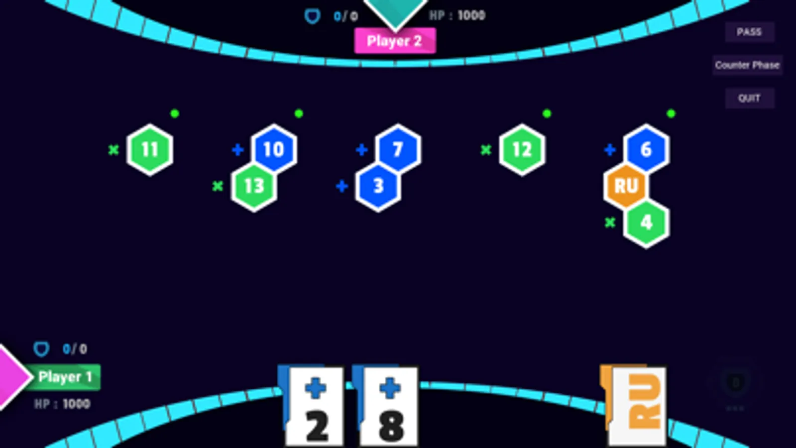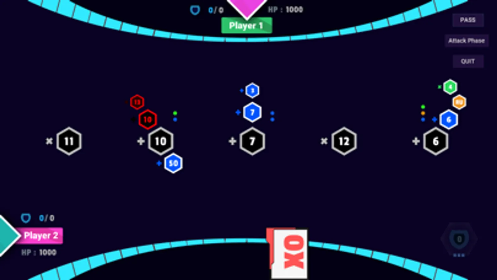 Stack Phase: You will Get 5 Operational Cards and 2 Special Cards & 5 Cards on the Board as Board Stack, In this Phase You Have to Create Stack on Board Cards Using Your Hand Cards That must be the Divisible of 10 if not Your Score of that Stack will Invalid , Note : You Can’t Move a Green Multiplication card twice on a single stack.