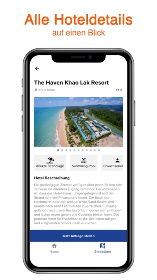 Suchen Sie Ihr Traumhotel in unserer mobilen App. Lassen Sie sich von unseren exklusiv ausgewählten Hotels für Ihre Reise inspirieren. Senden Sie uns mit wenigen Klicks Ihre ganz persönliche Reiseanfrage und lassen sich ein maßgeschneidertes Reiseangebot von uns erstellen.
