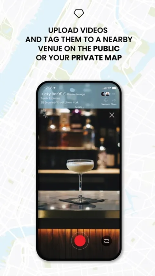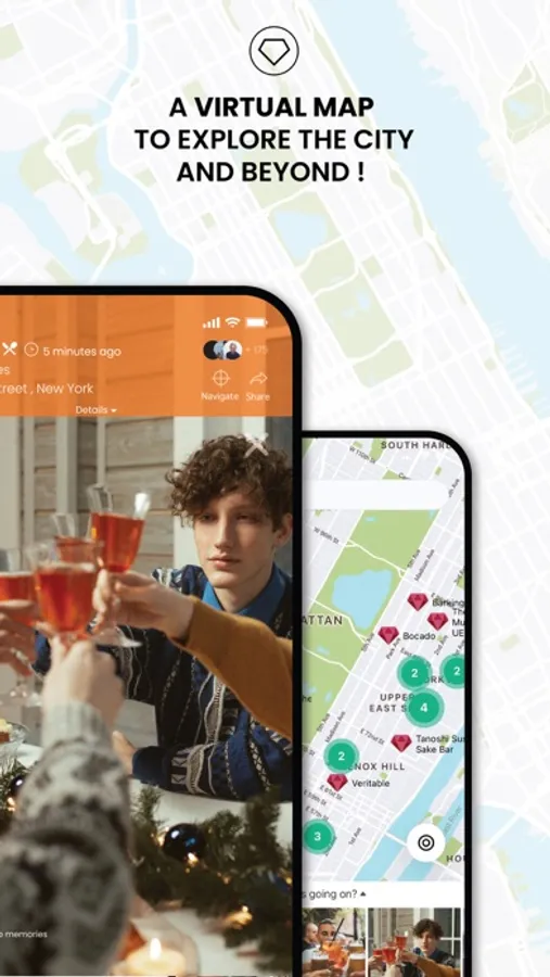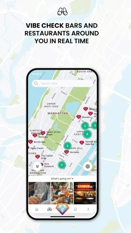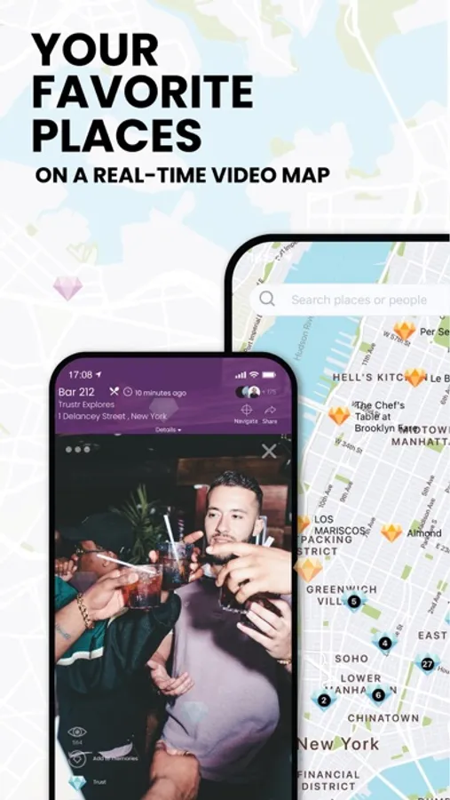 Tap on the diamonds to vibe-check bars and restaurants and find your new favorite spots, and share your own videos with friends on a real-time video map.