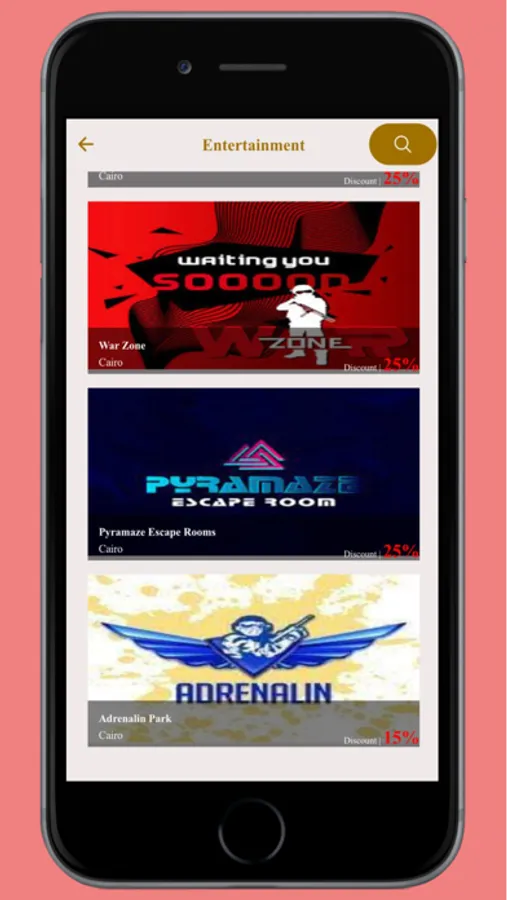 The App is showing discount offers for our partners Hotels, Restaurants, life style and Car rental companies.