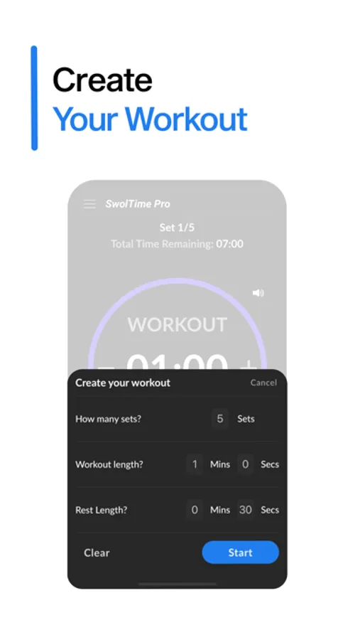 - Press play and let the fun begin. SwolTime lets you adjust the sets, workout time, and rest time on the fly during a workout.