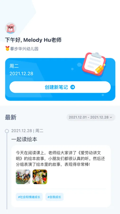 MobLab Childcare是一款帮助幼儿园老师、学前教育工作者进行幼儿成长过程性、阶段性评估和家园共育的智能工具。老师实时观察记录孩子们在园日常活动行为,多元化方式上传记录,自动生成儿童电子化成长档案,一键分享高效联结家长。基于MobLab Kids的科学测评和智能数据分析,帮助老师全面了解幼儿五大发展领域发展状况,精准把握每个孩子的发展需求和培育方向,高效跟踪孩子的成长进度,智能化推荐在家亲子活动,构建园所与家长互通的共育桥梁。
