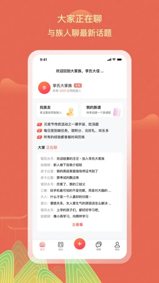 族聊是一款基于姓氏展开互动的兴趣社区