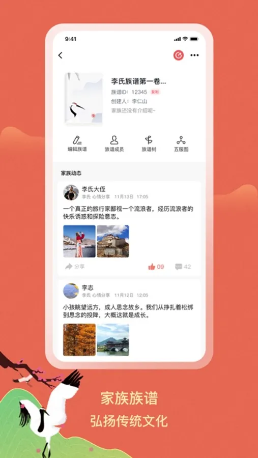 在这里你可以通过族谱记录、传承你的家族,记录更多家族事件。也能帮助你轻松连接亲朋好友;