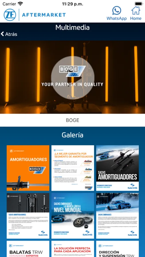 En esta aplicación podrás encontrar el catálogo de los productos de las marcas BOGE Amortiguadores. TRW Balatas. TRW Amortiguadores. TRW Partes de Suspensión y Dirección. SACHS Embragues. SACHS Amortiguadores.