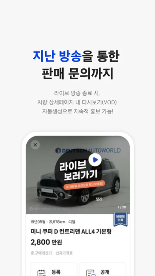 6. 송출 된 방송은 차란차 상세페이지에서 차량에 대한 정보로 고객들에게 제공 가능