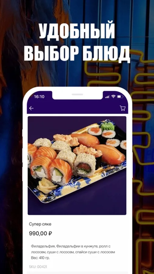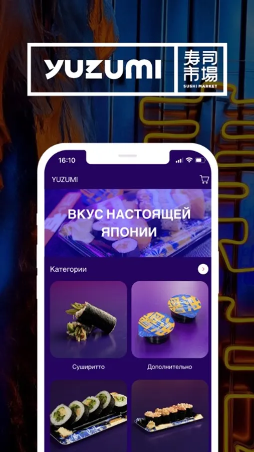 Приложение для заказа доставки из японского суши-маркет Юзуми в Хабаровске. Все суши из охлажденной рыбы и самых свежих ингредиентов.