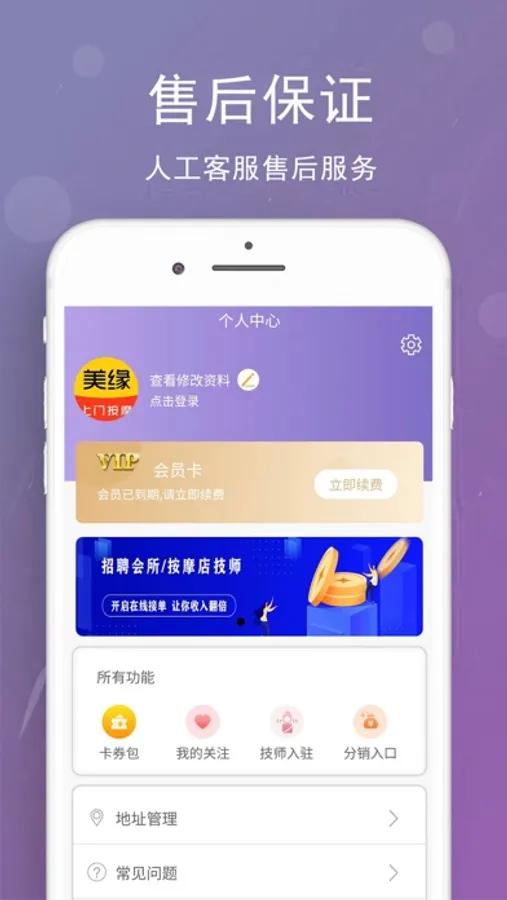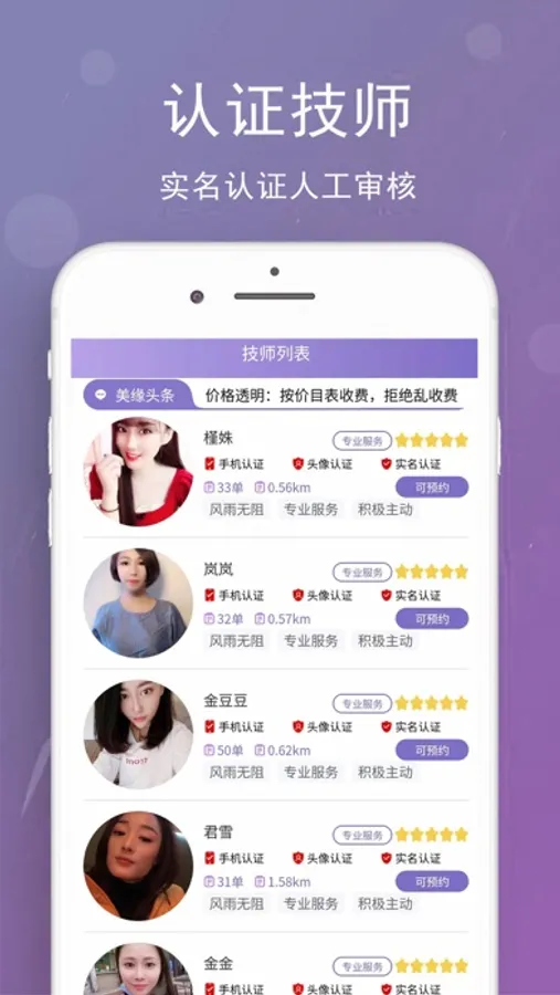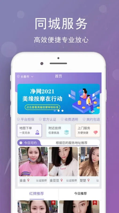 美缘按摩app为用户提供家政保洁,按摩等上门服务,方便快捷简单高效,为您解决各种生活问题,随时随地预约附近技师,所有技师真人实名认证,一键下单享受专业服务。