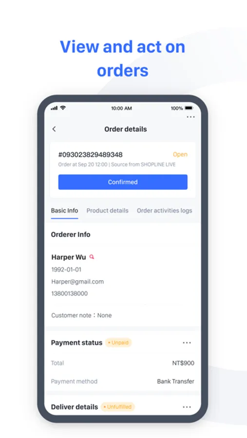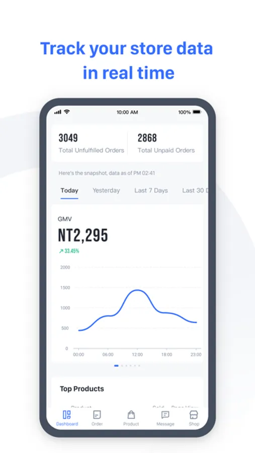 SHOPLINE Admin App, a mobile-friendly interface, is created specifically for SHOPLINE merchants. Whether you are commuting or on vacation, your entire business operation is in the palm of your hand with a phone. SHOPLINE Admin App supports replying to private messages on multiple social channels, livestreaming with just a click, and overviewing brand operation status and performance anytime, anywhere!