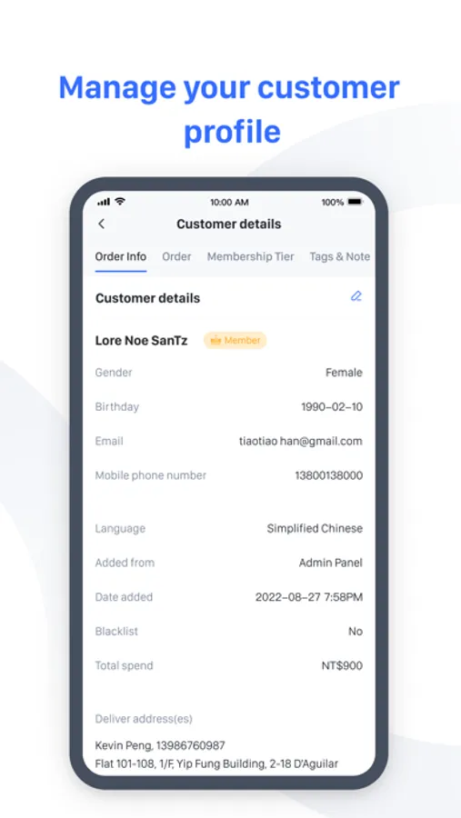 Customer Management — Provide a complete customer list, help view and edit your customer information