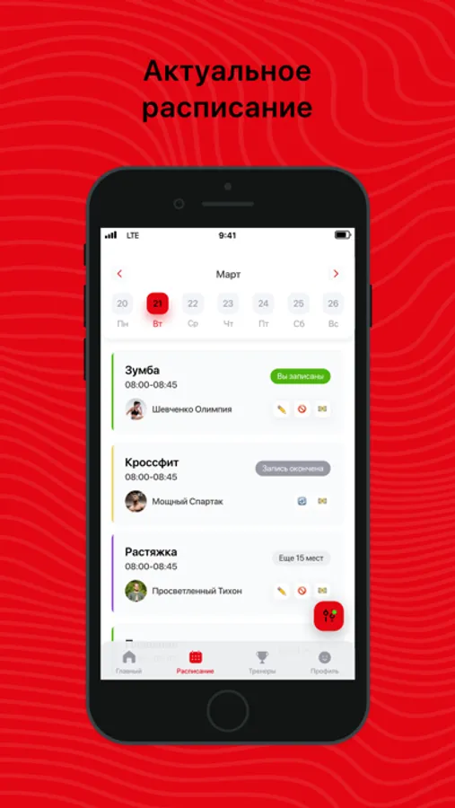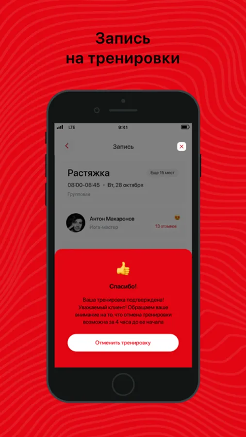 - Получать PUSH-уведомления о предстоящей тренировке за 3 часа;