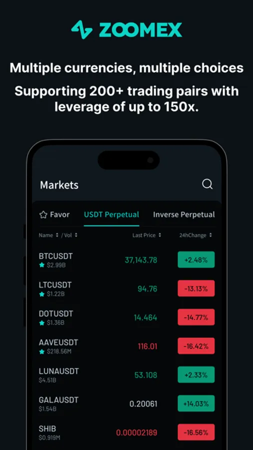 Welcome to ZOOMEX - the world's most professional digital asset trading platform, offering users derivative trading services for various assets such as Bitcoin (BTC), Ethereum (ETH), Dogecoin (DOGE), and more.