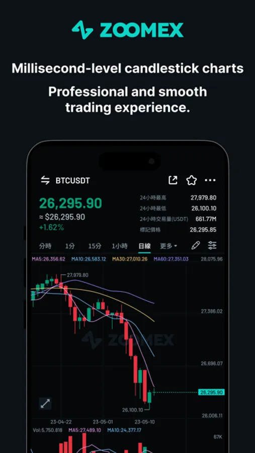Users can engage in both long and short positions for digital assets like Bitcoin (BTC) and Ethereum (ETH). ZOOMEX also supports one-click liquidation and offers a smooth and uninterrupted trading experience with millisecond-level candlestick charts. Download now to experience seamless trading services.