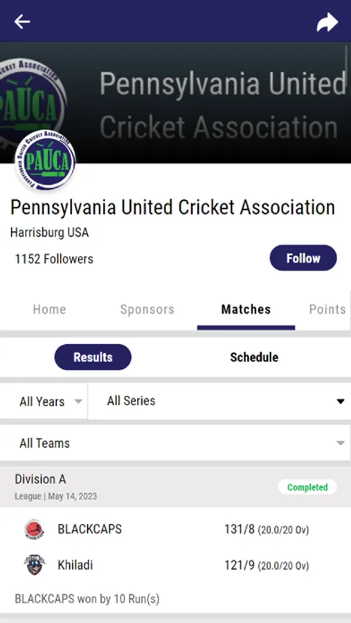 Pennsylvania United Cricket Association is organising Cricket tournaments in central Pennsylvania since 2004.