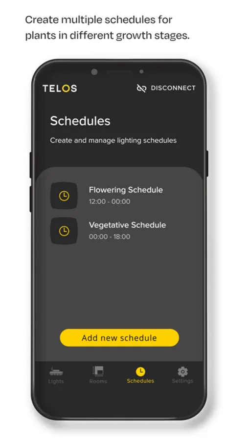 Use the Rooms functionality to group Telos grow lights together and apply different PPFD settings and schedules to all the systems within a single area quickly and easily. This is ideal for controlling two different grow areas with plants at different stages of the life cycle.