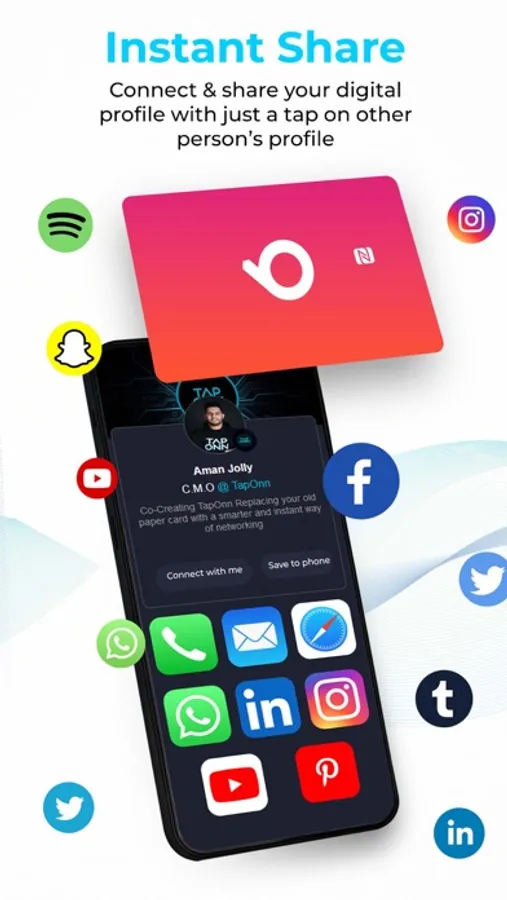 With our Nfc-powered eco-friendly smart products available on our website, you can tap & connect Instantly where your connections can save your details Instantly & can fill a form to provide their details to you, allowing two way communication.