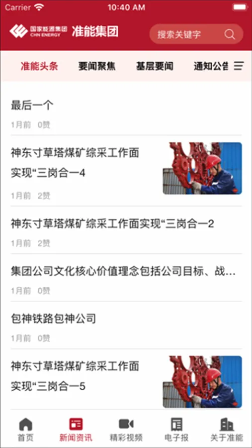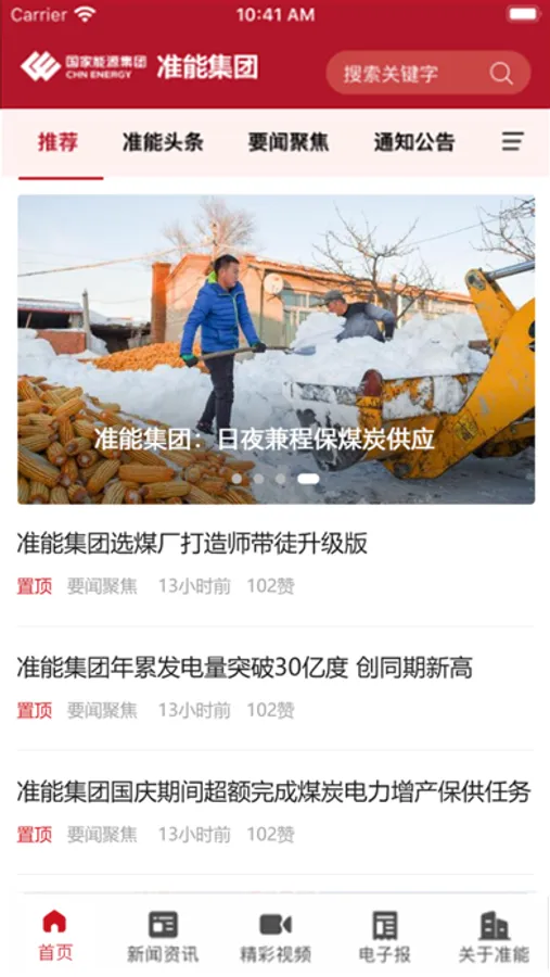 国家准能集团APP现在开通新闻资讯、精彩视频、电子报、图说新闻、新闻速览等栏目,第一时间权威发布准能集团最新的新闻报道、工作动态、事迹介绍、人物报道等信息,建设基于新媒体的准能集团与公众互动交流新渠道。