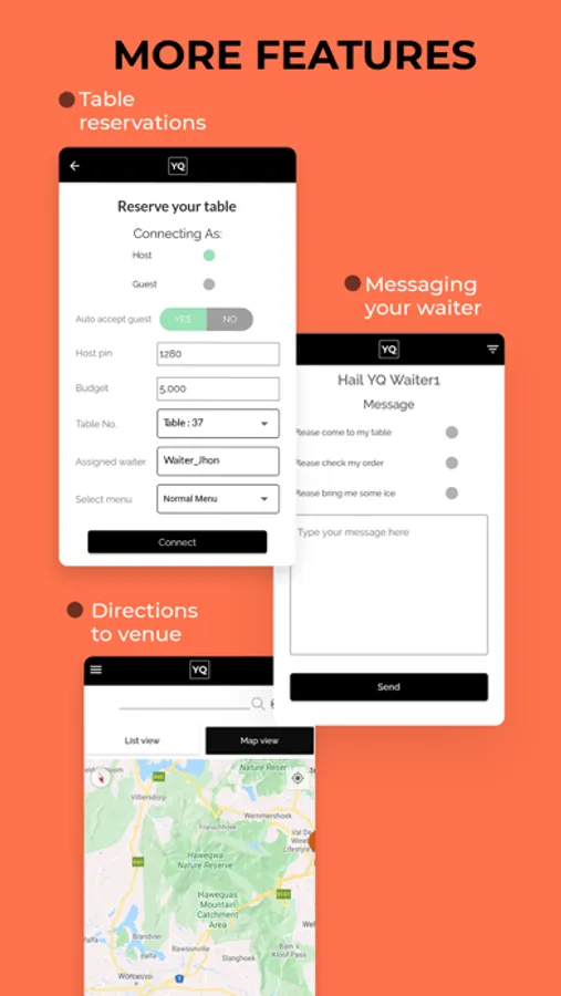 With YQ your waiter will only be a click of a button away. Order when you want to, send them a message if you have a question and pay your bill when you are ready to leave. No more straining your neck to find your waiter or sitting around when you are ready to go waiting, for the card machine to arrive!