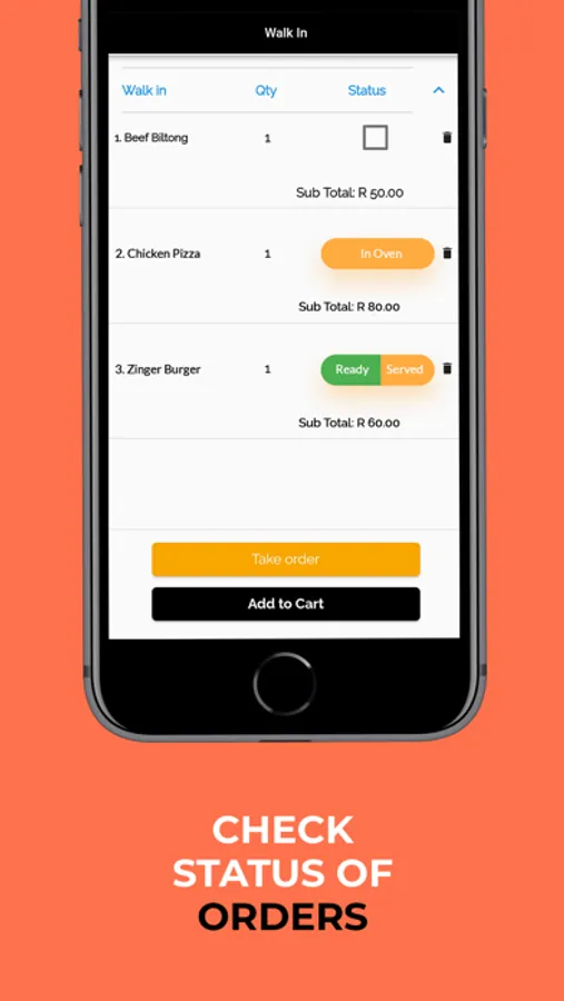 Food Preparation Status: You can send all orders to kitchen where food will be prepared and you can track its preparation time