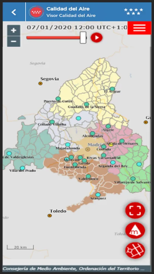 Esta aplicación permite acceder al Visor del Índice de Calidad del Aire con geolocalización mostrando los datos de Calidad del Aire de las estaciones tanto de la Comunidad de Madrid como del Ayuntamiento de Madrid más cercanas.