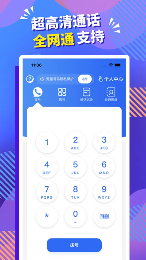 便捷的免费网络电话软件,超强小号电话、可回拨的随身电话卡虚拟电话。