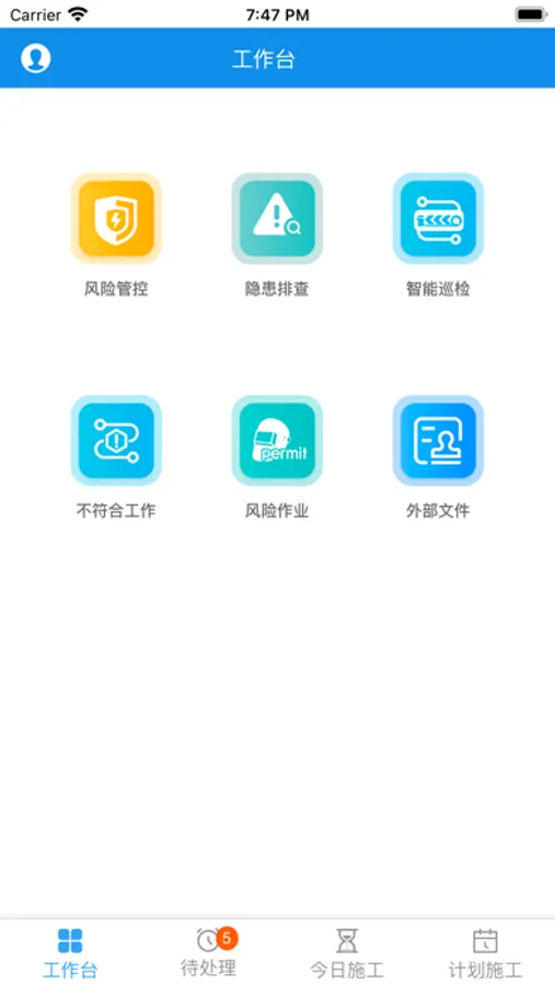 OHSA APP effectively covers the current management content in the field of EHS management, including risk classification control, hidden danger investigation, intelligent patrol inspection, non-compliant work closed loop, construction operation approval, special operation approval, external document approval, hazardous waste scrap approval, laws and regulations query and other functions.