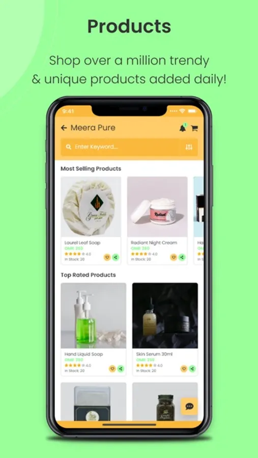 المتجر يقدم منتجات طبيعية 100% وهي منتجات للعناية بالذات وتشمل مجموعات مختلفة للعناية بالبشرة والتي تضم بدورها مجموعة العناية بالبشرة، والغسول العضوي، ومجموعة زيوت الجسم الخاصة وكذلك صابون، بلسم، سيريم وهي خلاصه الابداع الانتاجي من خلال قسم البحوث والتطوير والمنتجات المزروعة بكل محبة بمعايير عالمية للصحة والجودة . تحت العلامة التجارية MEERA PURE