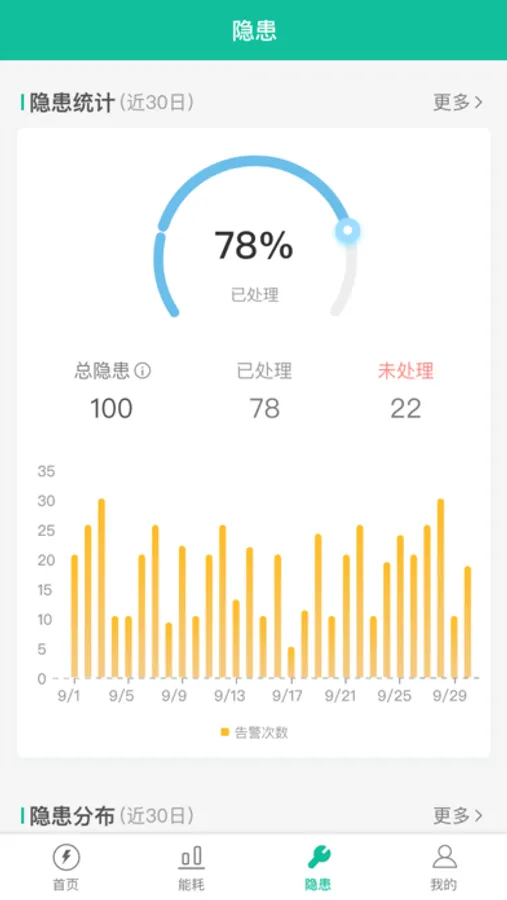 针对企业发生所有的隐患,按等级、类型、发生设备进行统计与分析,并对所有隐患进行追踪溯源。