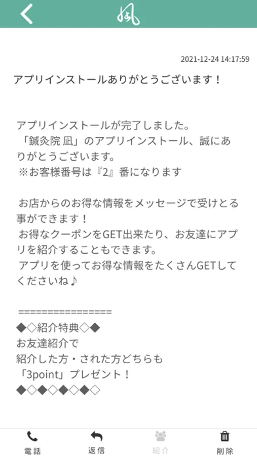 鍼灸院凪のアプリをSNSを通じてお友達に紹介する事ができます。