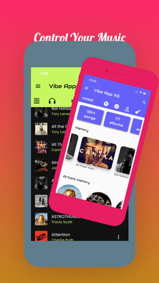 Experience music. Vibe Music! XS is small but powerful. The best music player for all your devices. Stream and import music, share songs, make playlists with a beautiful interface. Listen to offline for free.