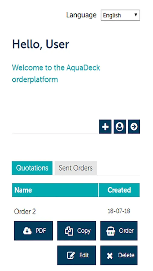 The Aquadeck® OrderTool helps you to avoid mistakes and to increase customer satisfaction. You can make a detailed price calculation, place an order and view your order history.