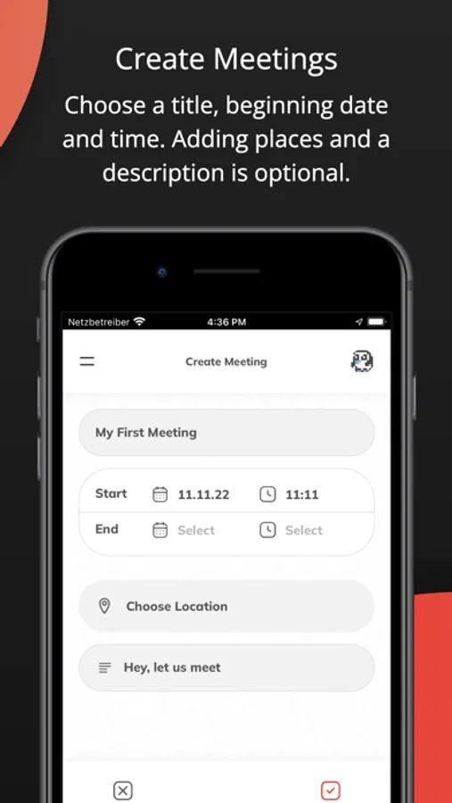 Our goal is to provide you with a fast and convenient way of setting up meetings and finding new places in your vicinity.