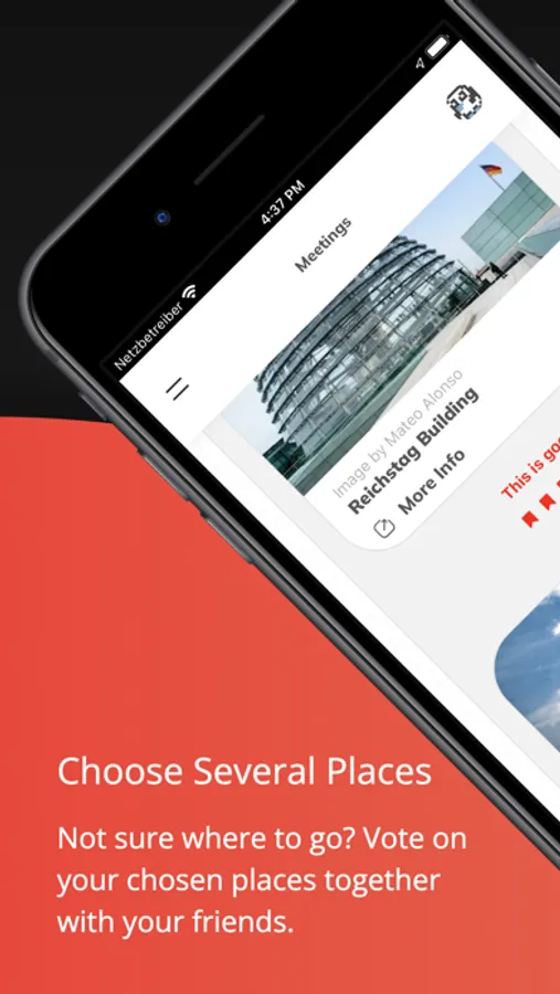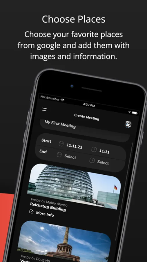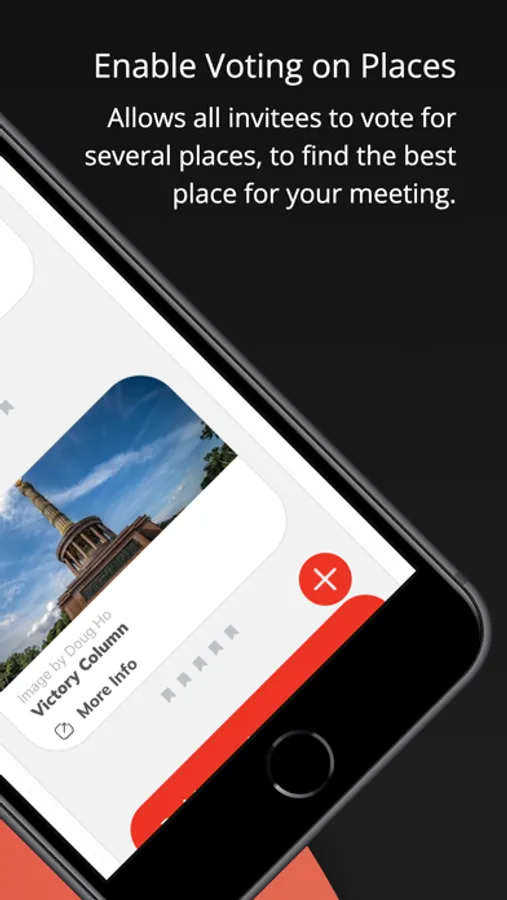 By creating meetings and joining, users can find new places by occasion categories and vote for their favourite among a selection.