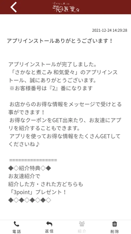 また、お店からメッセージが届くので、いつでも最新の情報がご確認いただけます。