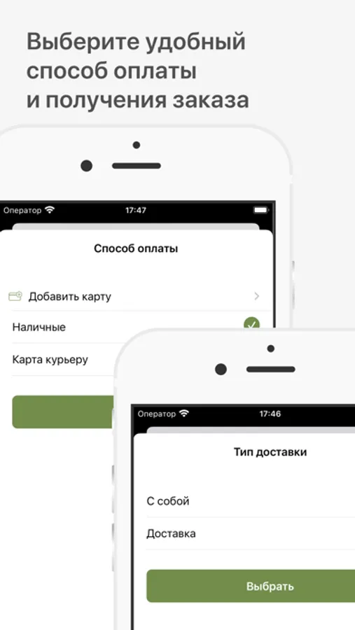 Укажите время, когда хотите прийти за своим заказом или выберите доставку с указанием времени и адреса доставки.