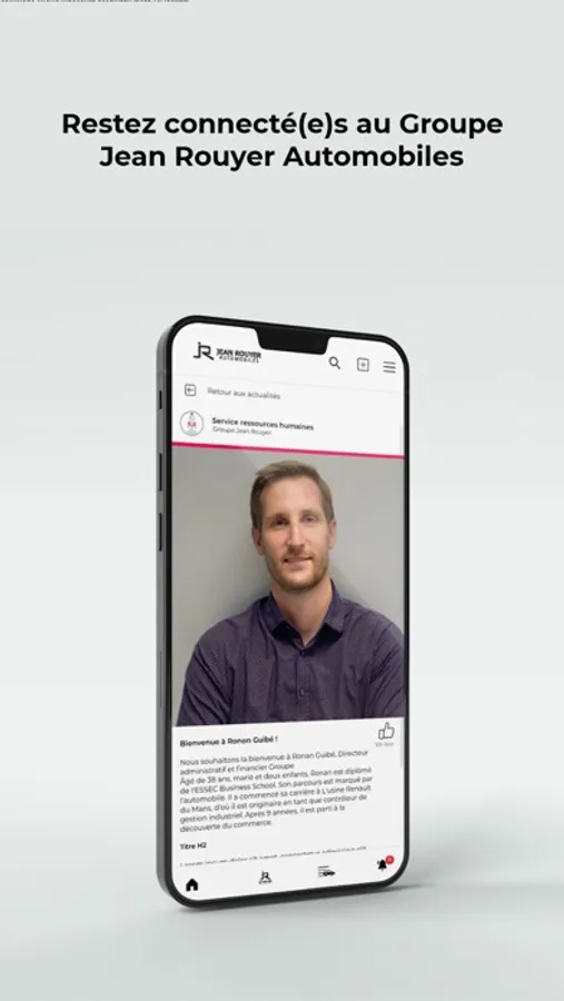 Cette dernière vous permettra de vous informer, partager et suivre toute l’actualité automobile du Groupe et de ses collaborateurs. Des articles seront diffusés sur l’application au quotidien, textes, vidéos, photos, témoignages … Plongez dans l’univers JRA.