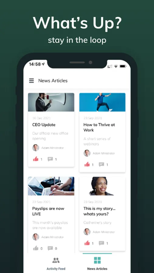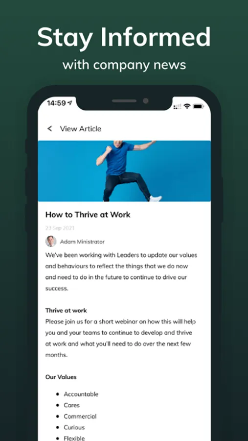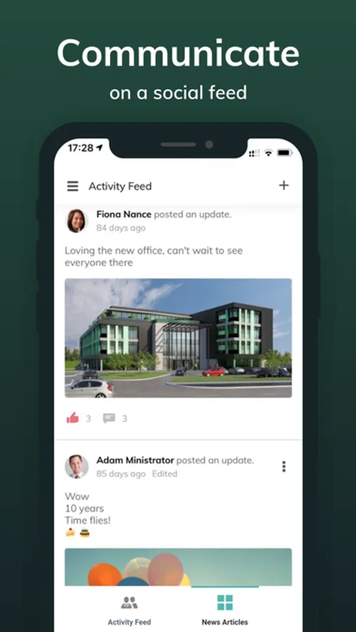 • Stay up to date with what’s happening in your company with news, views, and company updates