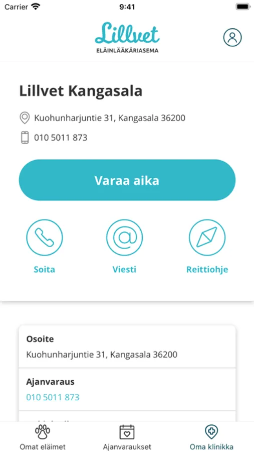 Eläinlääkäriasema Lillvet tarjoaa asiakkailleen mahdollisuuden katsella omien lemmikkien hoitotietoja sekä tehdä helposti ajanvarauksia Lillvet-klinikalle. Voit esimerkiksi tarkistaa helposti rokotusten ajantasaisuuden, jatkohoito-ohjeet sekä laboratoriotulokset. Sovelluksella voit myös tallentaa omia eläinten hoitomuistiinpanoja sekä tallentaa lemmikkisi kuvan eläimen terveyskorttiin. Kirjautuminen tapahtuu potilastietokantaamme ilmoittamallasi puhelinnumerolla, johon lähetetään tekstiviestinä salasana sovellukseen kirjautumiseen.